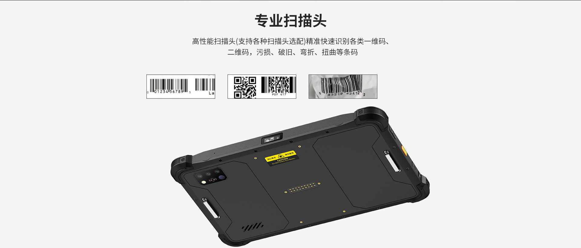 高性能扫描引擎,准确快速识别各种条形码、二维码,以及彩色、磨损、弯曲、扭曲的条形码等